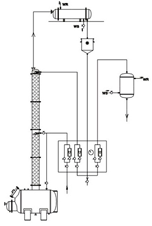 本裝置采用高效不銹鋼波紋填料,接觸酒精部位,如塔體、冷凝器、穩壓罐、冷卻蛇等均采用優質不銹鋼制作,成品酒精不被污染,塔釜采